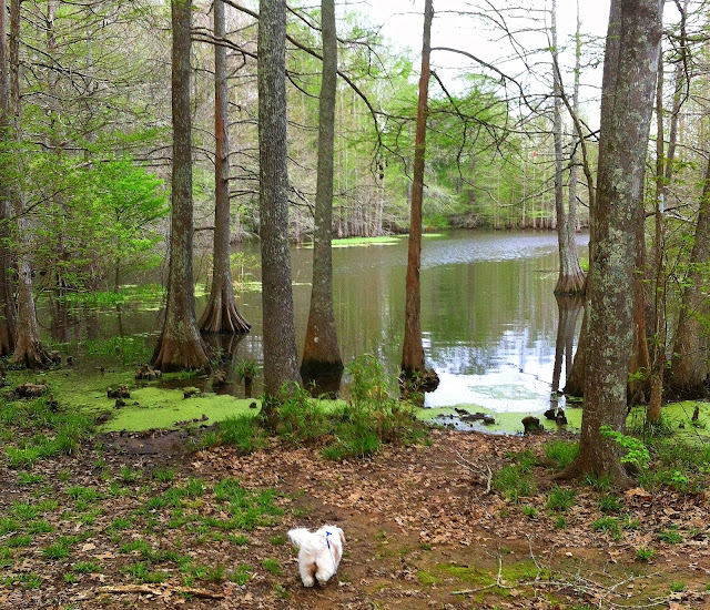 We have seen the sun pop out a couple of times today. Didn't look like rain so we took a very long walk this morning. We walked around Loop A, B, C, and D in South Landing Campground and looked at 108 campsites.